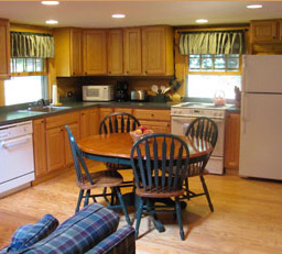 with fireplace, one and a half baths, full eat-in kitchen with all modern appliances including dishwasher,